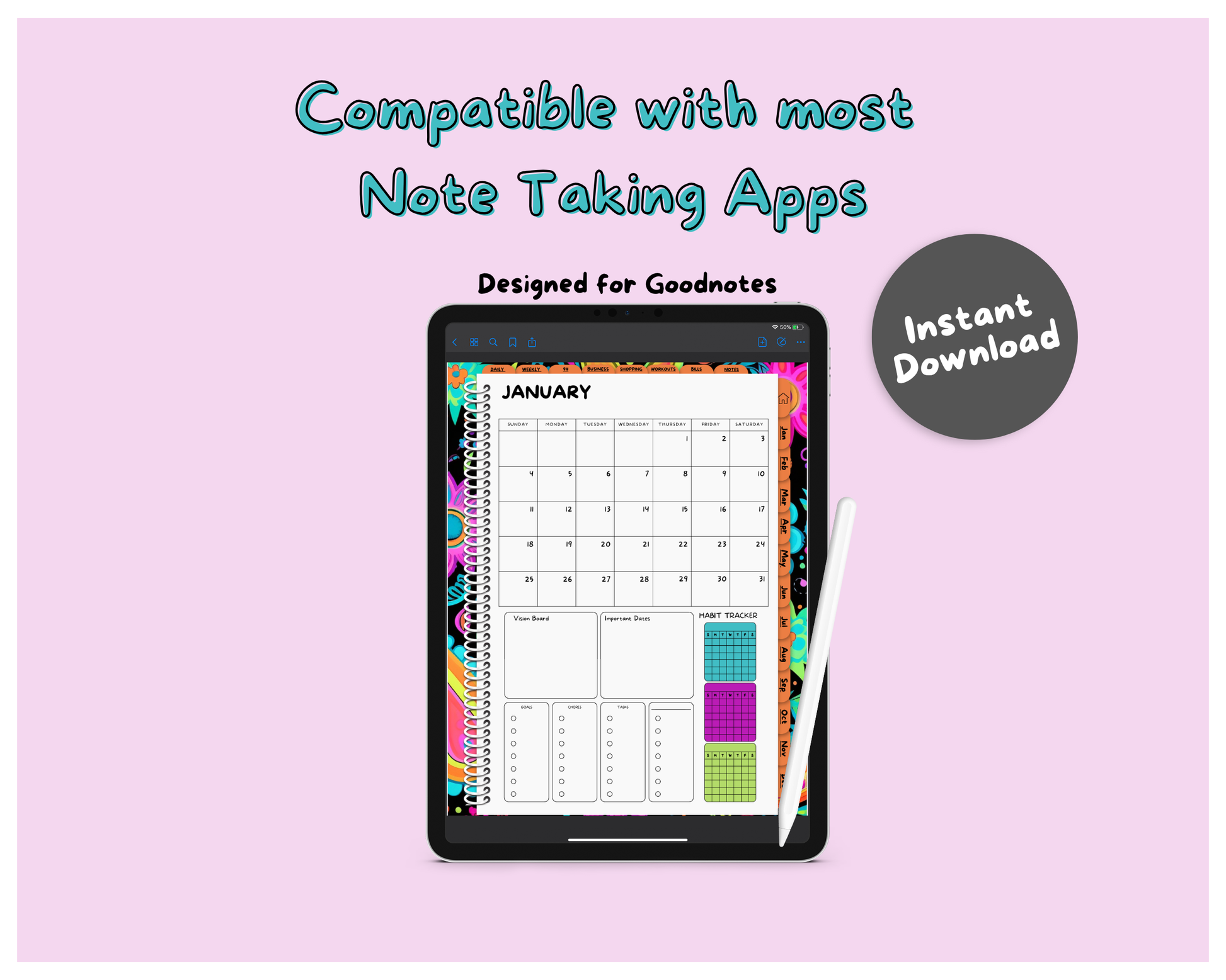 This Digital Planner is an instant download. No physical product will be mailed to you. You will need a note taking app in order to use this product. While our planners are compatible with most note taking apps, this planner was developed with Goodnotes features in mind.