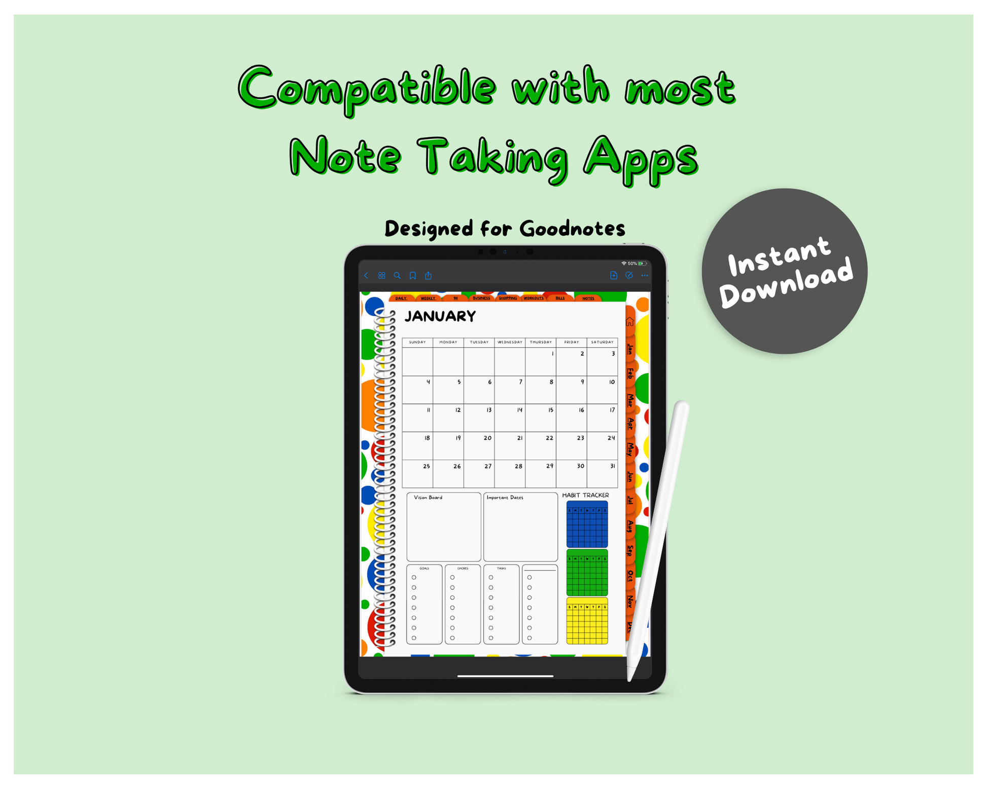 This Digital Planner is an instant download. No physical product will be mailed to you. You will need a note taking app in order to use this product. While our planners are compatible with most note taking apps, this planner was developed with Goodnotes features in mind.