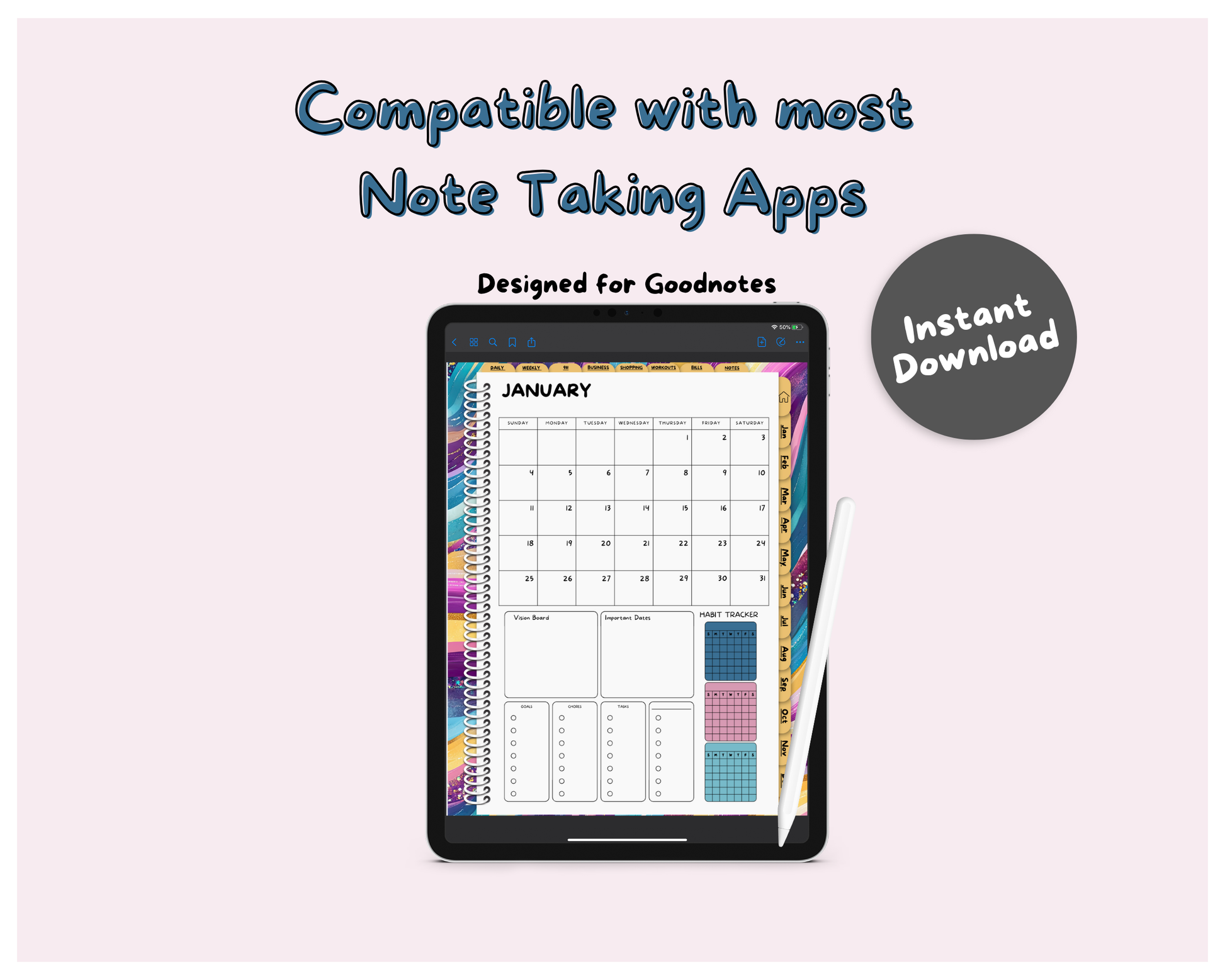 This Digital Planner is an instant download. No physical product will be mailed to you. You will need a note taking app in order to use this product. While our planners are compatible with most note taking apps, this planner was developed with Goodnotes features in mind.